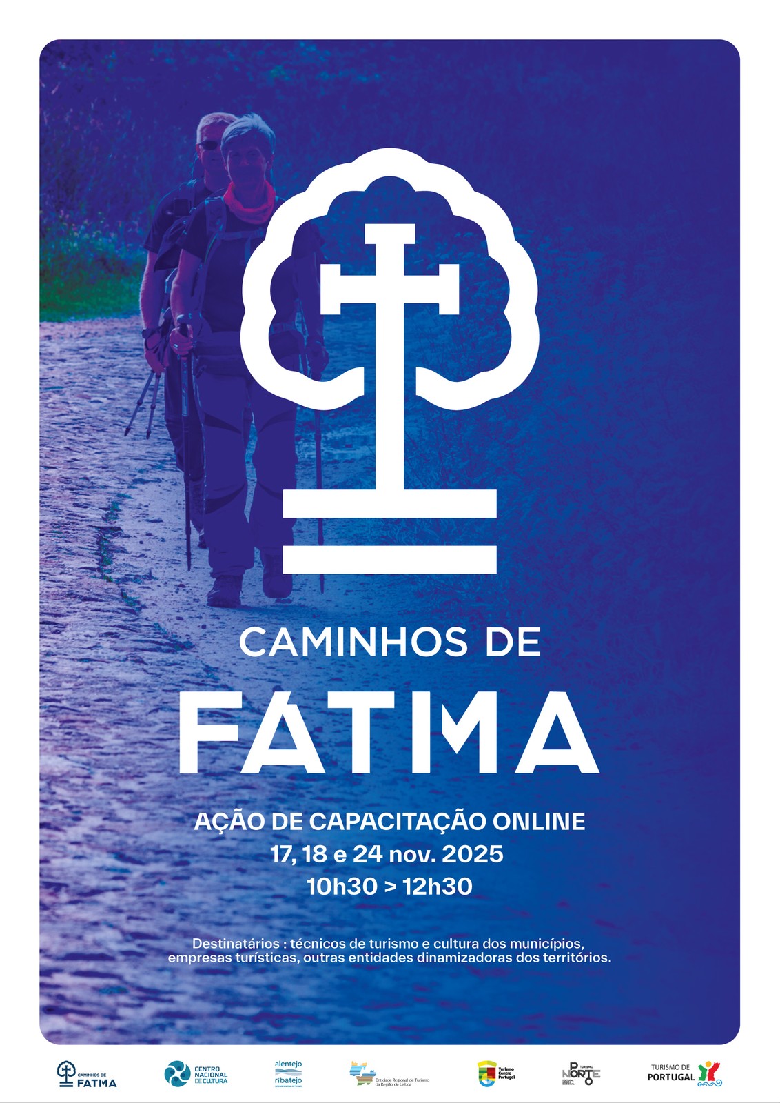 Participe na ação de capacitação online “Caminhos de Fátima”, que se realiza nos dias 17, 18 e 24 de novembro, dirigida a técnicos de turismo e cultura dos municípios, empresas, operadores turísticos, bem como outras entidades envolvidas na dinamização de territórios e projetos de peregrinação.