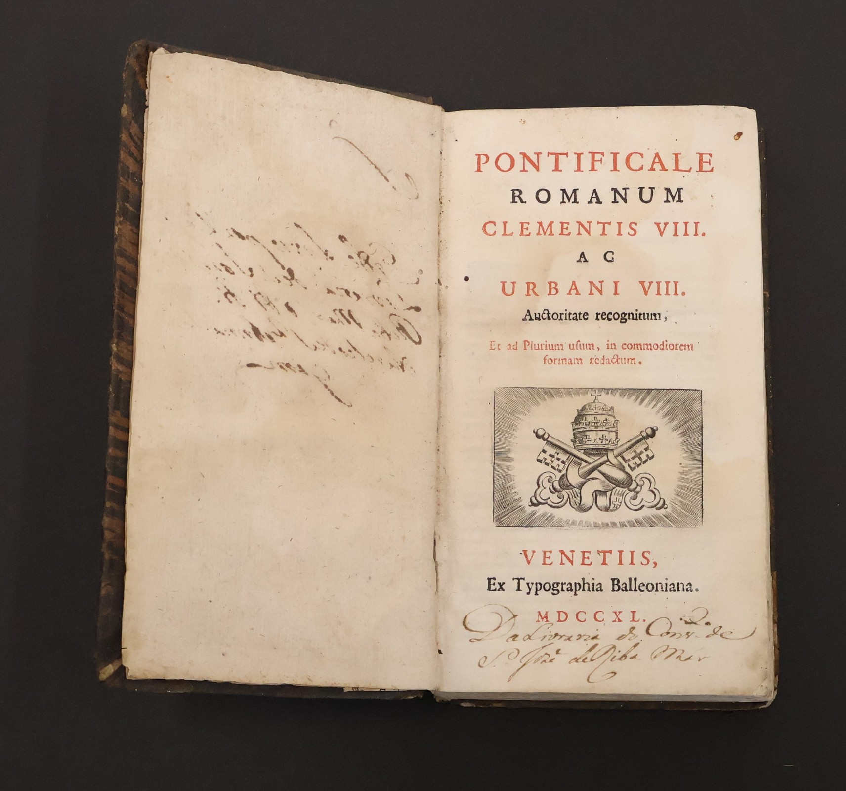 Embora o dia 14 de fevereiro seja, na nossa tradição, mais associado ao Amor, no próximo dia 14 também se assinala, de forma menos conhecida, o Dia Internacional da Doação de Livros. Para celebrar esta data, destacamos a obra Pontifício Romano (Pontificale Romanum), nas revisões de Clemente VIII e Urbano VIII, impressa em Veneza pela Tipografia Balleoniana. Trata‑se do livro litúrgico latino‑católico que reúne os ritos reservados aos bispos, e que pertenceu ao Padre Joaquim Vieira da Rosa, nascido a 6 de janeiro de 1866 na freguesia de Alqueidão da Serra, concelho de Porto de Mós, e falecido a 20 de agosto de 1938.