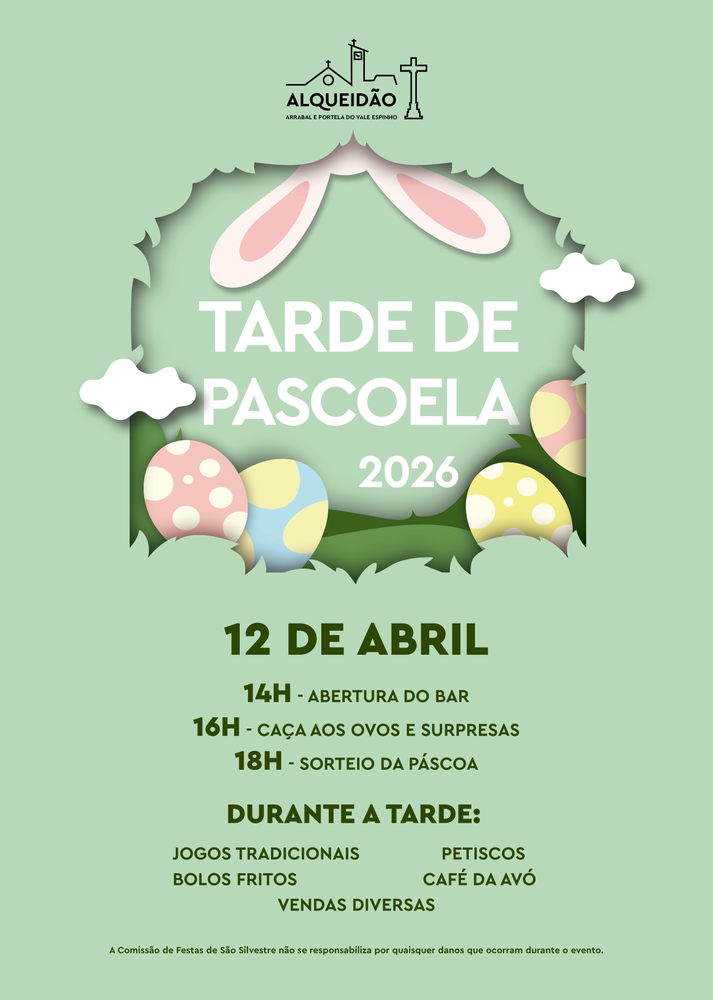 A aldeia de Alqueidão do Arrimal acolhe, no próximo dia 12 de abril, a Tarde de Pascoela 2026, um evento organizado pela Comissão de Festas de São Silvestre 2026/2027, que celebra as tradições pascais e promove o convívio entre a comunidade.