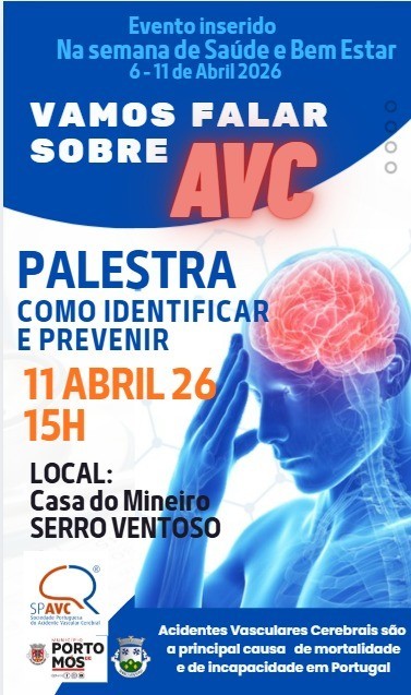 No âmbito da Semana de Saúde e Bem-Estar, irá realizar-se no próximo dia 11 de abril de 2026, às 15h, uma palestra dedicada ao tema do Acidente Vascular Cerebral (AVC), na Casa do Mineiro, na freguesia de Serro Ventoso.