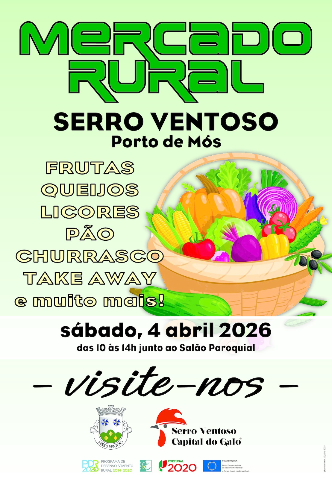 A Freguesia de Serro Ventoso convida-os a aparecer no seu Mercado Rural, onde podem encontrar frutas, queijos, licores, pão, churrasco, take-away e muito mais. Apareçam!