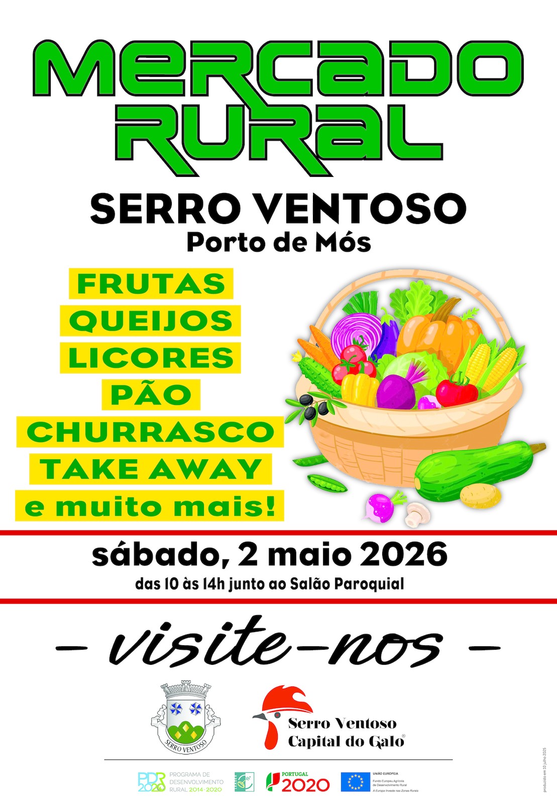 O Mercado Rural de Serra Ventoso, é um evento dedicado à promoção dos produtos locais e tradicionais da região. Realizado no dia 2 de maio de 2026, entre as 10h e as 14h, junto ao Salão Paroquial, este mercado convida todos a desfrutar de uma manhã autêntica e cheia de sabores.