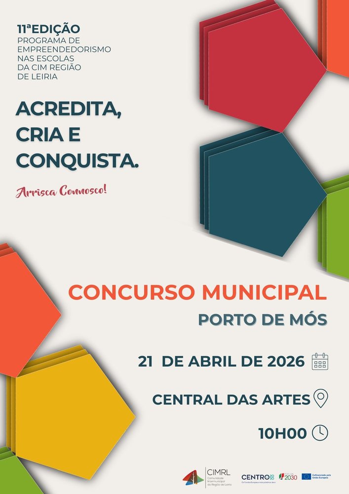 Está a chegar mais uma edição do Concurso Municipal, inserido na 11.ª edição do Programa de Empreendedorismo nas Escolas da CIM Região de Leiria.