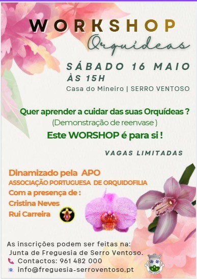 No dia 16 de maio às 15h, a APO, Associação Portuguesa de Orquidófilia, em parceria com a Junta de Freguesia de Serro Ventoso, dinimiza este workshop em Serro Sentoso e convida-o a participar.