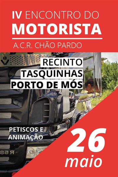 O IV Encontro do Motorista do Chão Pardo terá lugar no próximo dia 26 de maio, este ano em Porto de Mós, no Recinto das Tasquinhas de Porto de Mós com o seguinte programa: