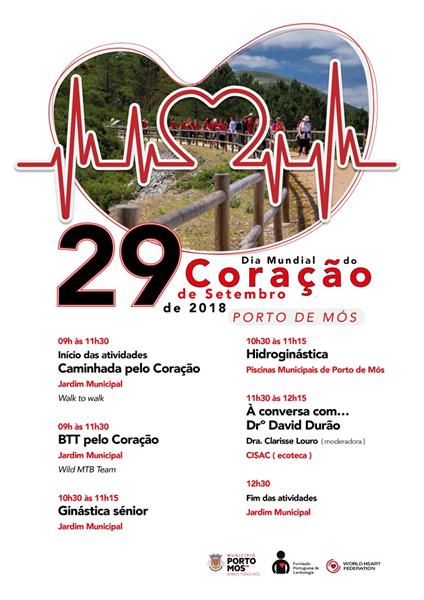 Porto de Mós celebra o Dia Mundial do Coração, que terá lugar no próximo dia 29 de setembro, sábado, com um programa de atividades alargado.