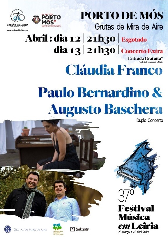 Novidade em 2019 serão dois concertos nas Grutas de Mira de Aire, Porto de Mós, onde se apresentam, a 12 e 13 de abril, a cantora Cláudia Franco, que estreia o novo disco "Praia verde", e a dupla Paulo Bernardino e Augusto Baschera, com "Êxodo".