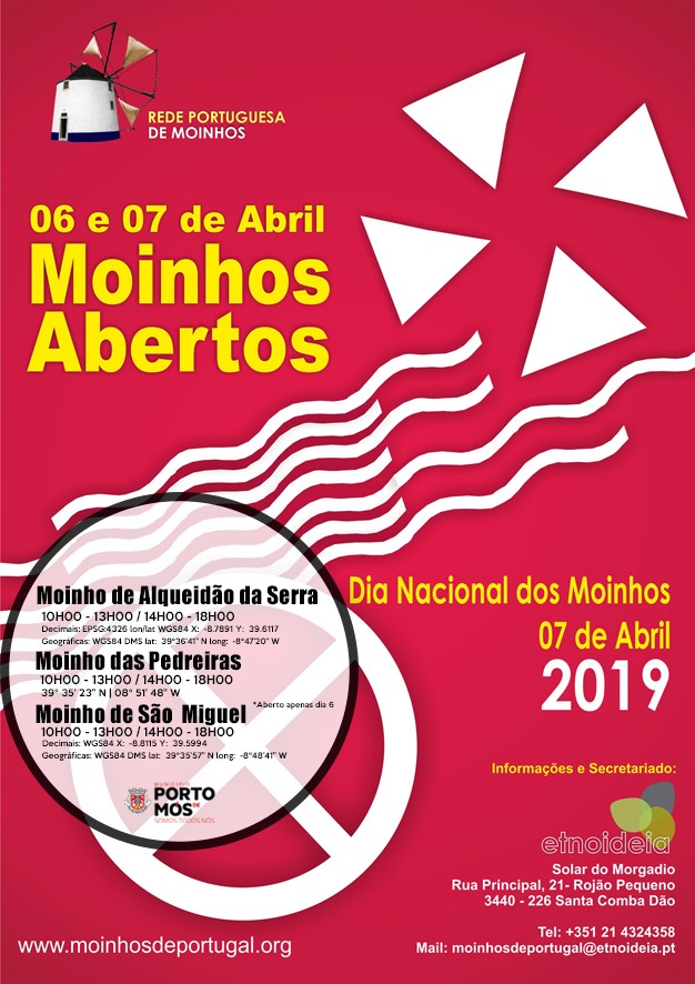 O Município de Porto de Mós vai aderir a esta iniciativa pela segunda vez consecutiva, tendo abertos ao público os Moinhos de Alqueidão da Serra, Pedreiras e São MIguel, entre as 10h00 e as 13h00 e as 14h00 e as 18h00.