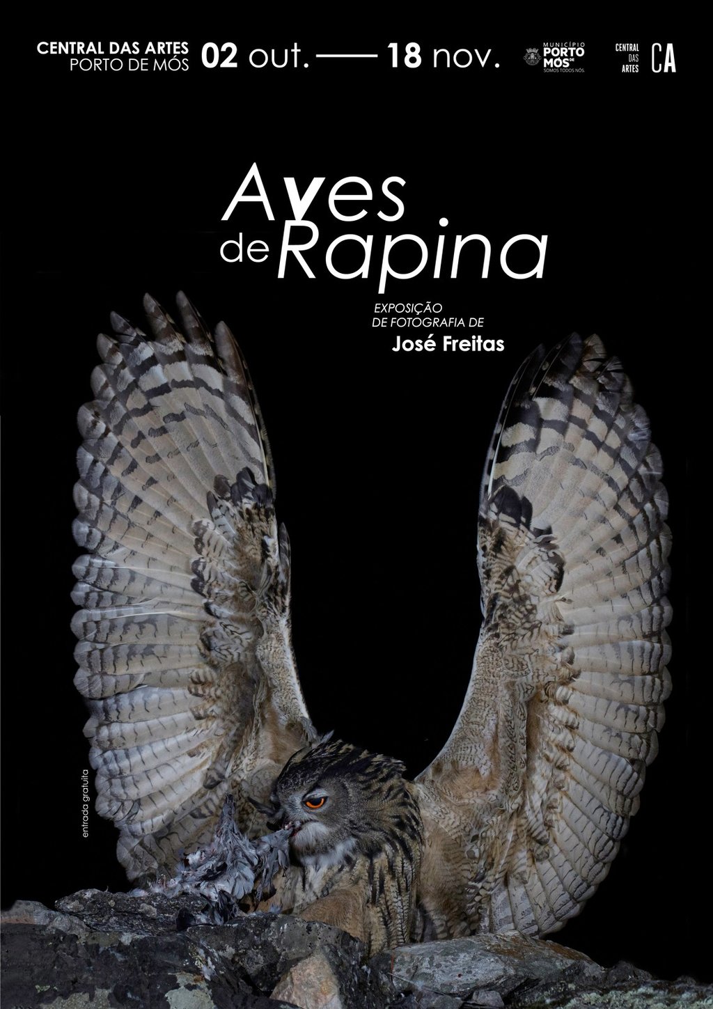 área de conteúdos (não partilhada)De 2 de outubro a 18 de novembro, a Central das Artes acolhe a Exposição de Fotografia "Aves de Rapina" de José Freitas.