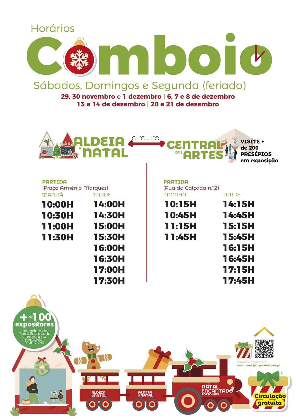 Prepare-se para viver a magia do Natal de uma forma ainda mais especial! Aos sábados, domingos e feriados, o Comboio do Natal Encantado leva miúdos e graúdos numa viagem cheia de cor, alegria e espírito natalício, entre a Aldeia de Natal e a Central das Artes.