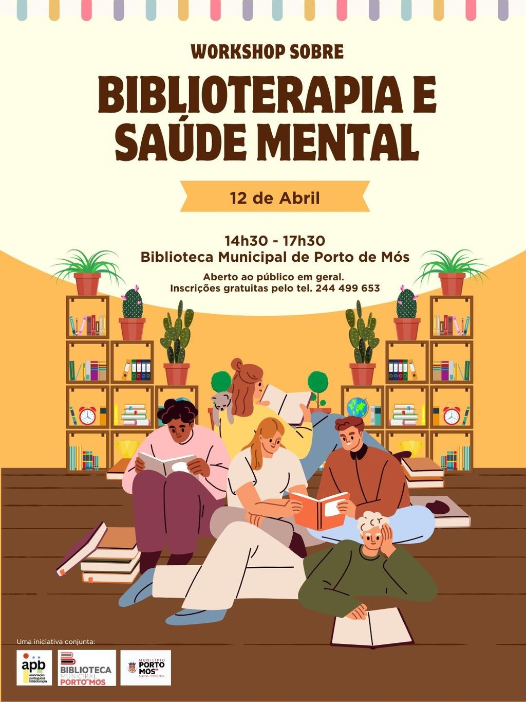 A Biblioteca Municipal de Porto de Mós, em parceria com a Associação Portuguesa de Bilblioterapia, convida toda a comunidade a participar no seu workshop sobre biblioterapia e saúde mental.